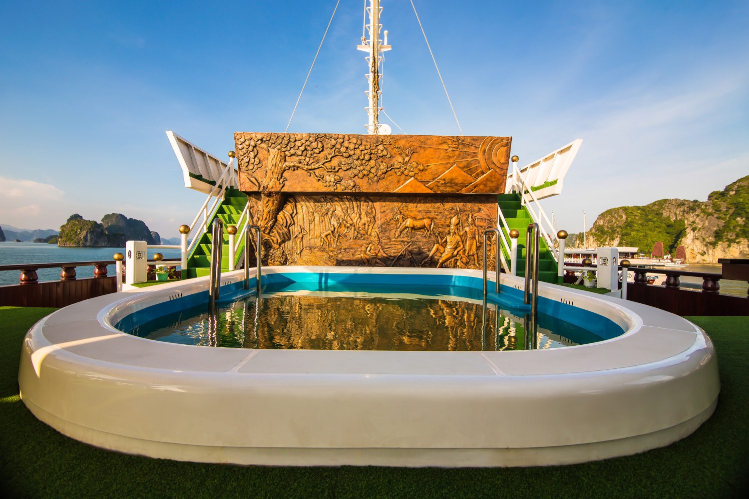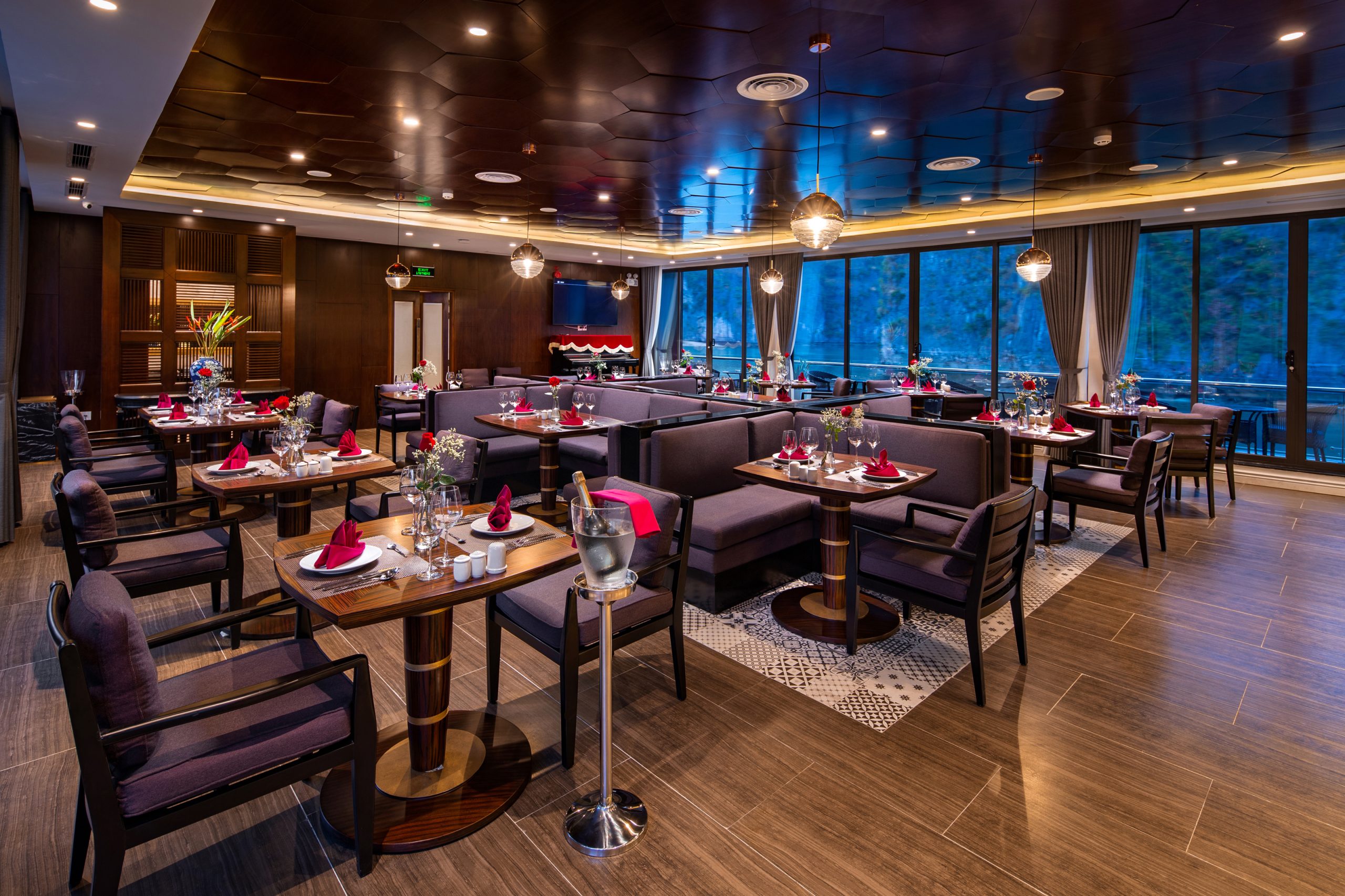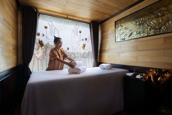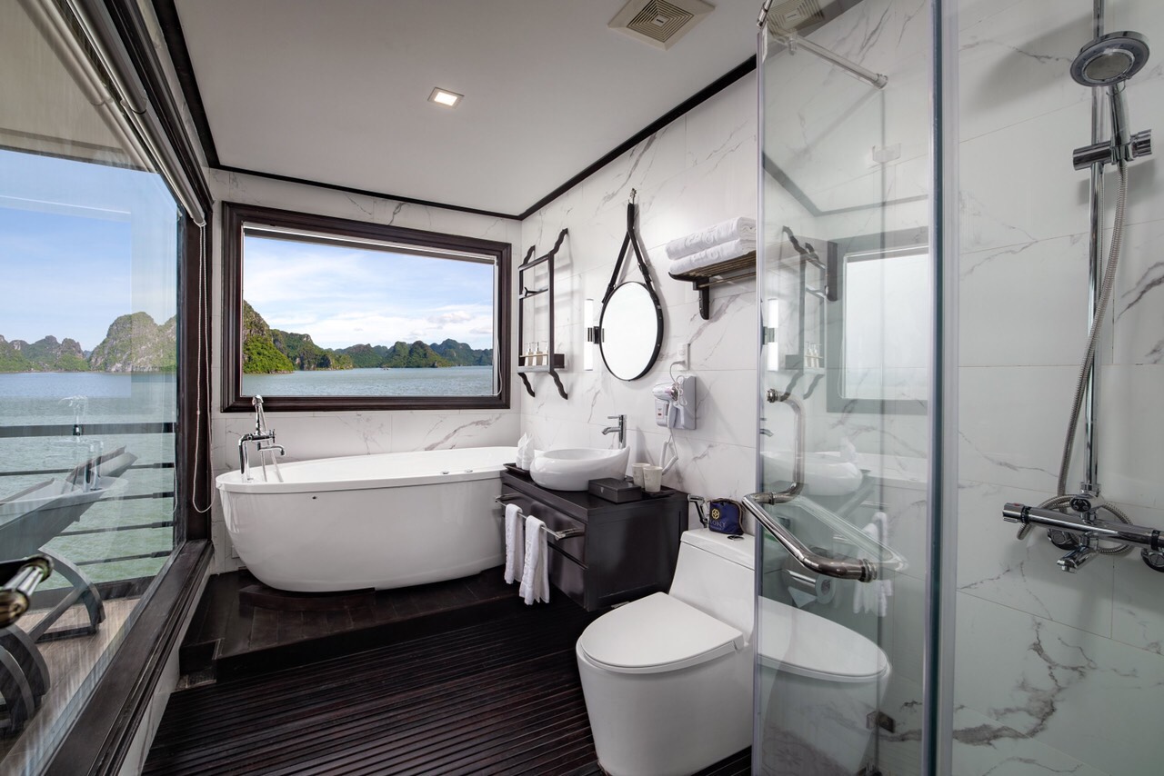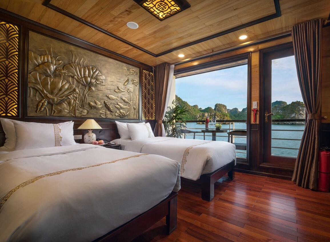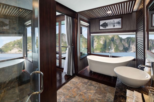 The five-deck steel craft measures 86 meters long, 13.9 meters wide, and 13 meters high, making it the largest overnight ship to grace Halong Bay’s waters. But it is the ship’s sublime selection of onboard entertainment, premium facilities, and elegant cabin design that will dazzle first-time passengers.
