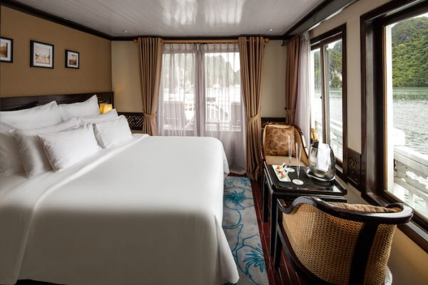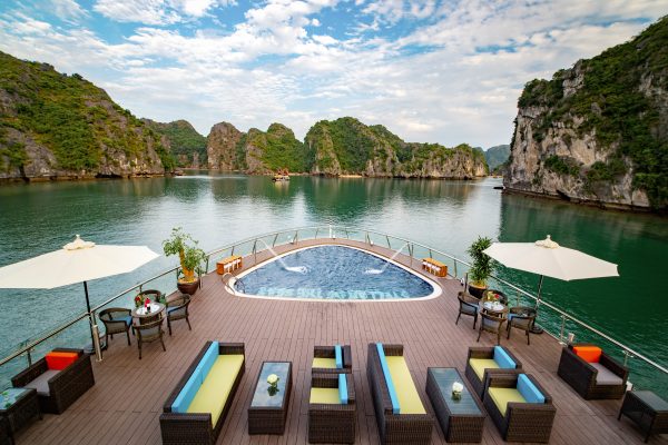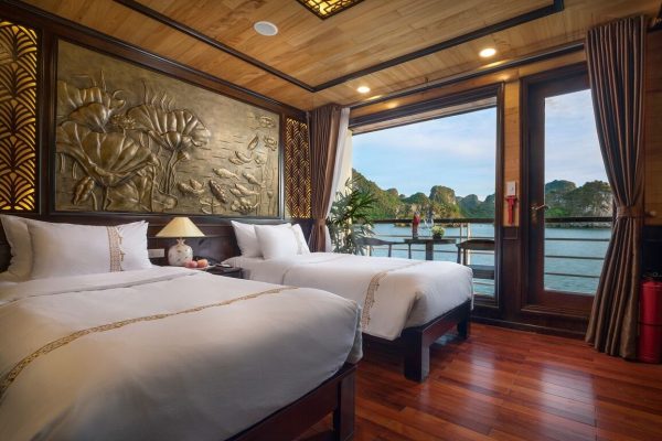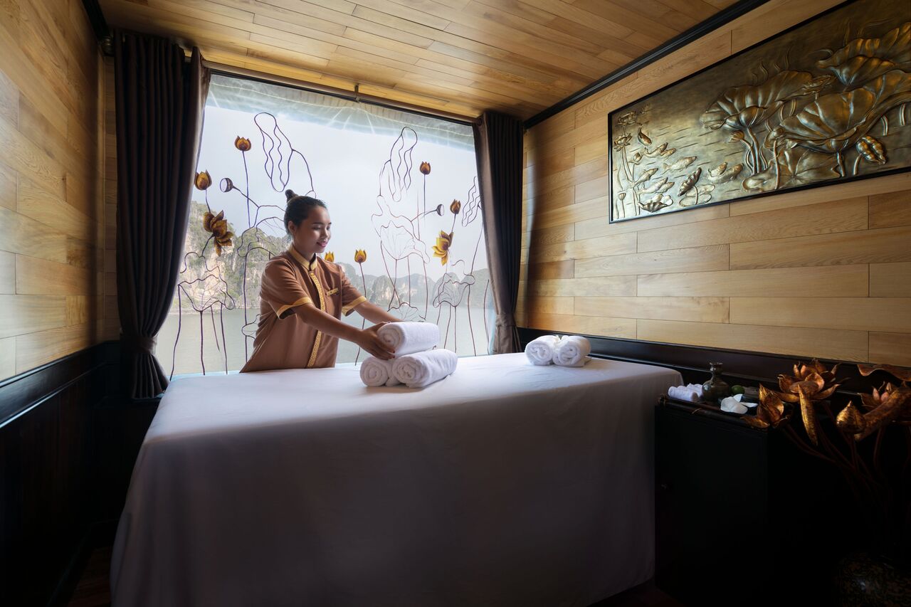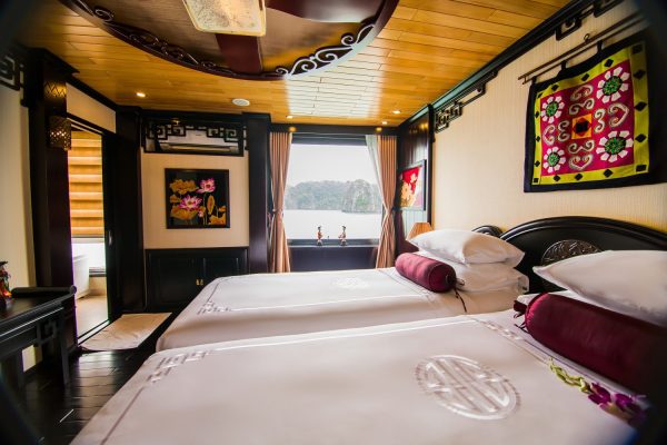 Peony Cruises designs jam-packed itineraries while cruising along the Ha Long – Lan Ha Bay. Enjoy your stay in an air-conditioned modern cabin with free WiFi access and all ensuited facilities. The cruises also has a spa, an on-site restaurant and bar.