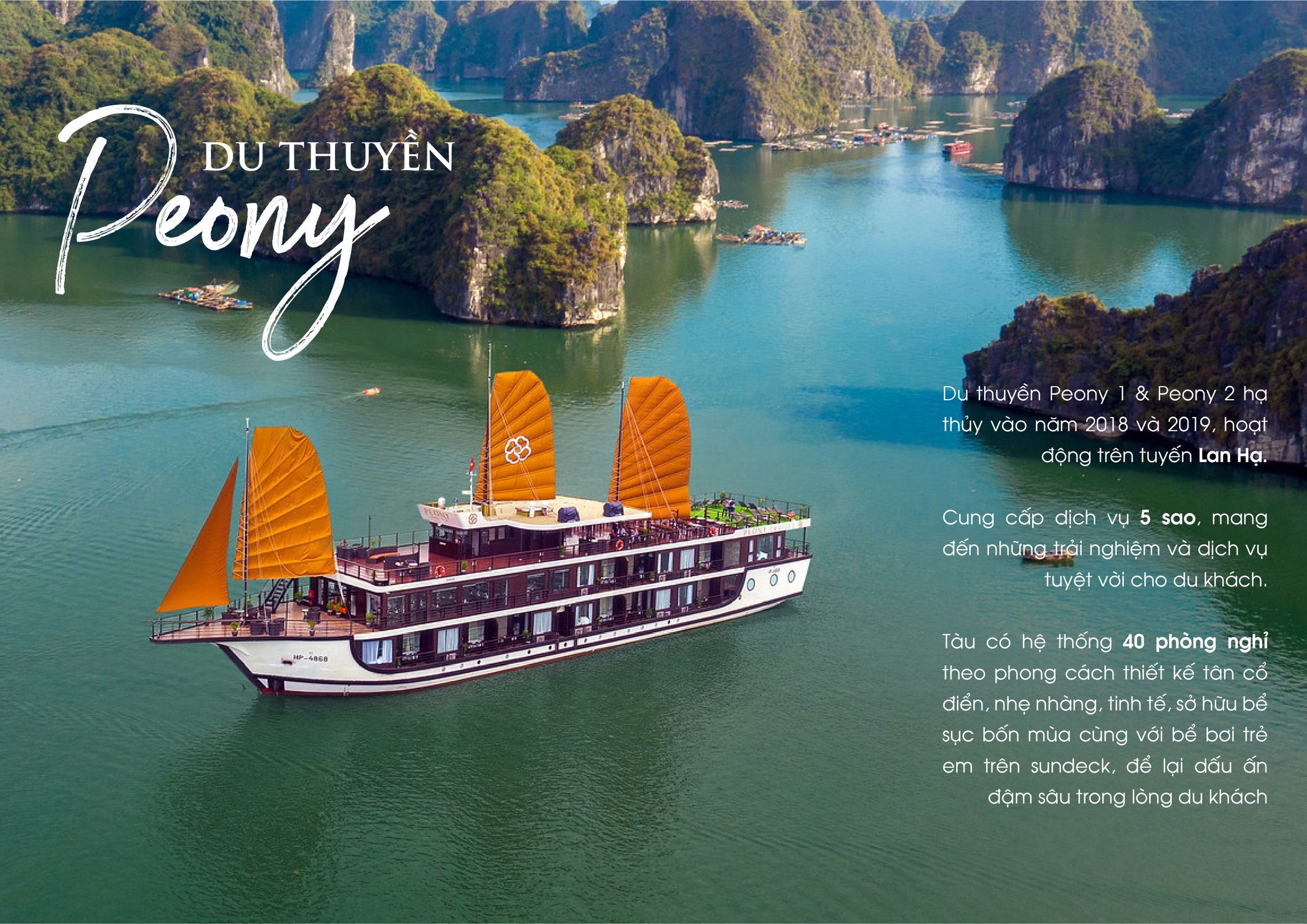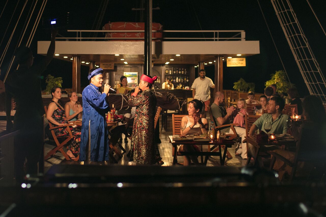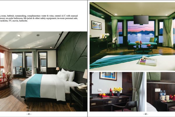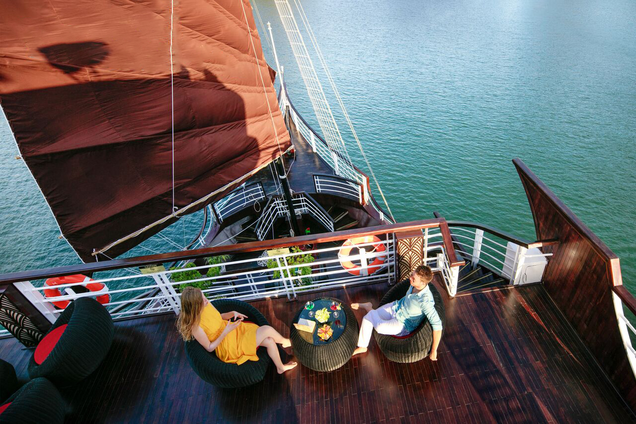 Operated since 2011, Paradise Sails vessels contain 17 boutique cabins with a classic wooden interior (06 window cabins, 07 balcony cabin, 02 Paradise Suite and 02 Terrace Suite), a cozy and sophisticated dining room, and an expansive sundeck exhibiting the best views of Ha Long Bay twinned with relaxing places in which to unwind.